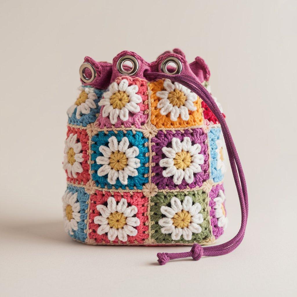 3. Crochet Daisy Granny Square Drawstring Pouch Pattern