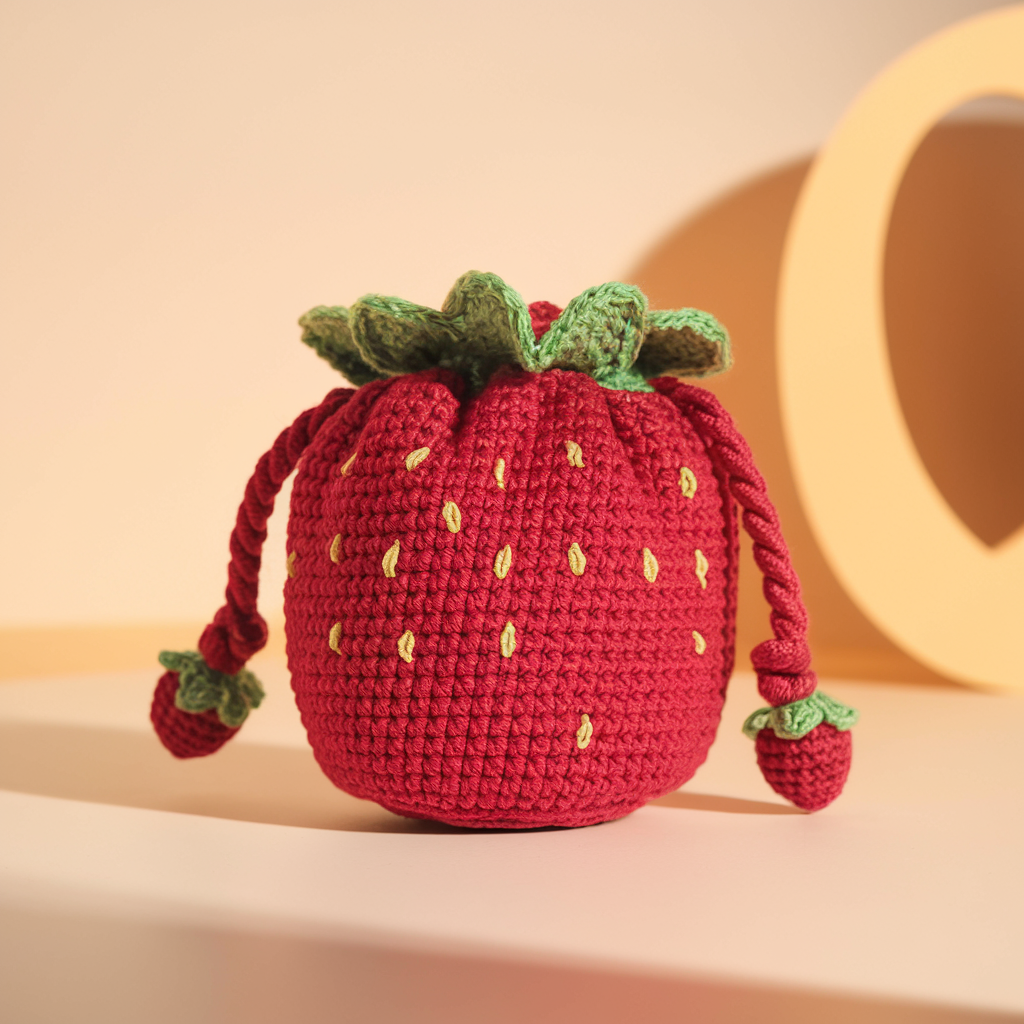 - R6–R9: sc around even (30) — height for small strawberry pouch.