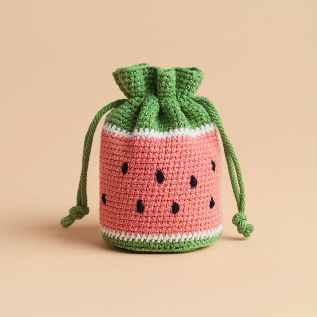 9. Crochet Mini Watermelon Drawstring Pouch Pattern