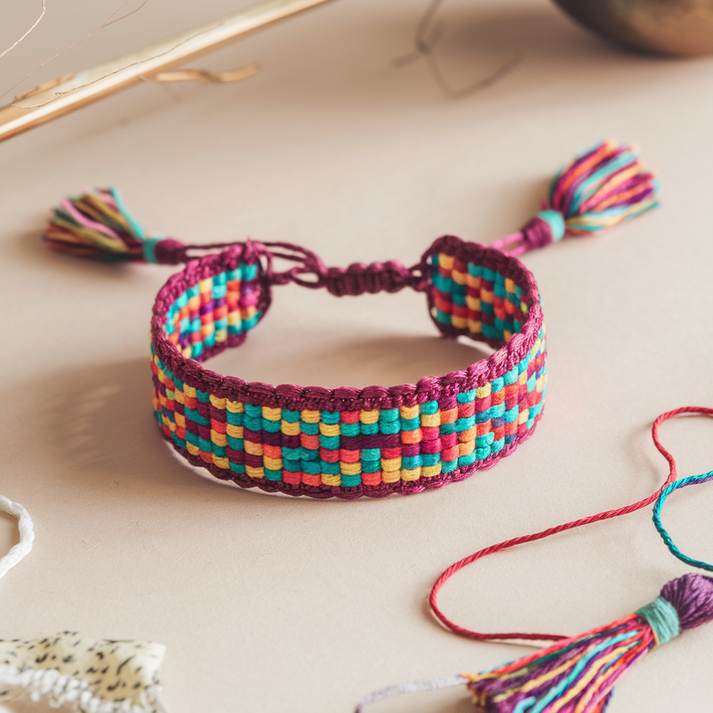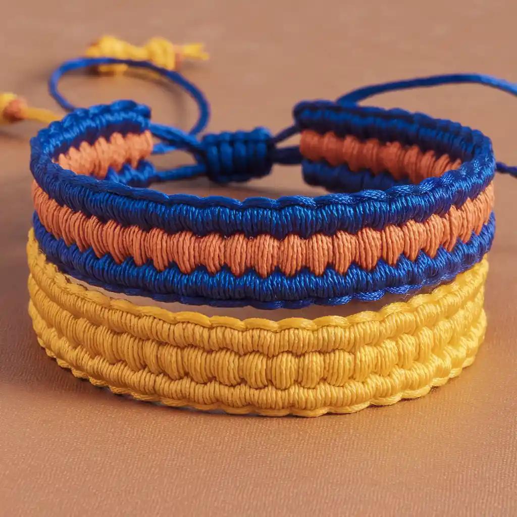 - Continue: Repeat rows until bracelet length equals wrist circumference minus 1″ (leave 1″ for tightening knot). Keep tension even: not too tight (bracelet will curl) and not too loose (gaps).