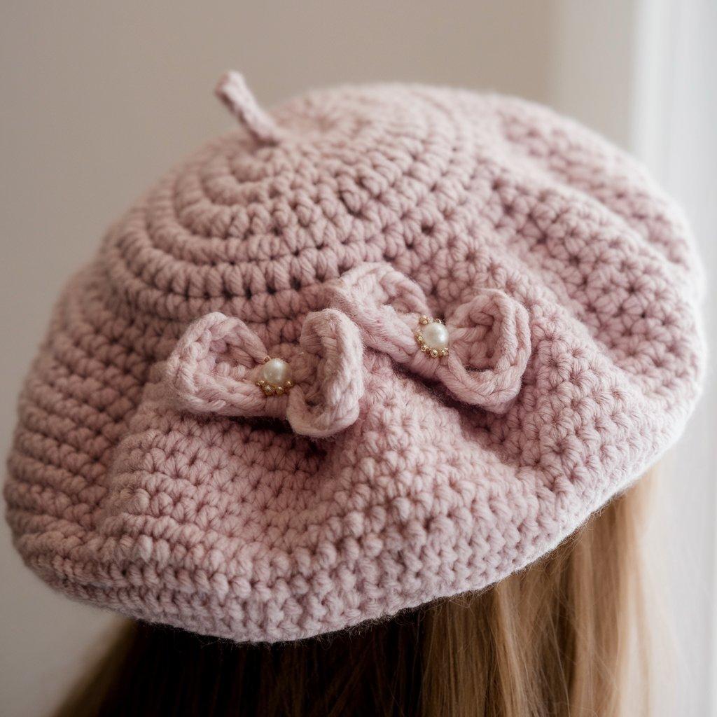 - Small bow: ch 10, sc back along chain to create a flat rectangle, wrap center with small yarn or make a small tie to cinch bow. Sew bow to side of beret. Optionally add two bows opposite each other for symmetry.