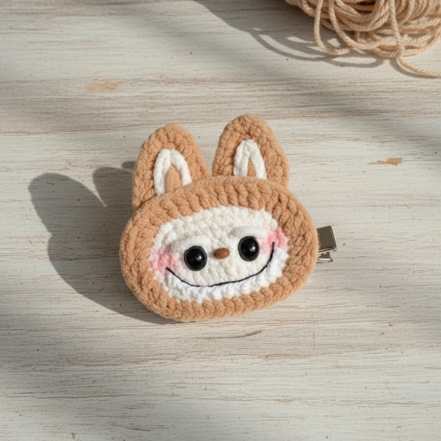 Patterns for motifs: Labubu implies a cute character or rounded motif — here we do a small amigurumi-style face and bow.