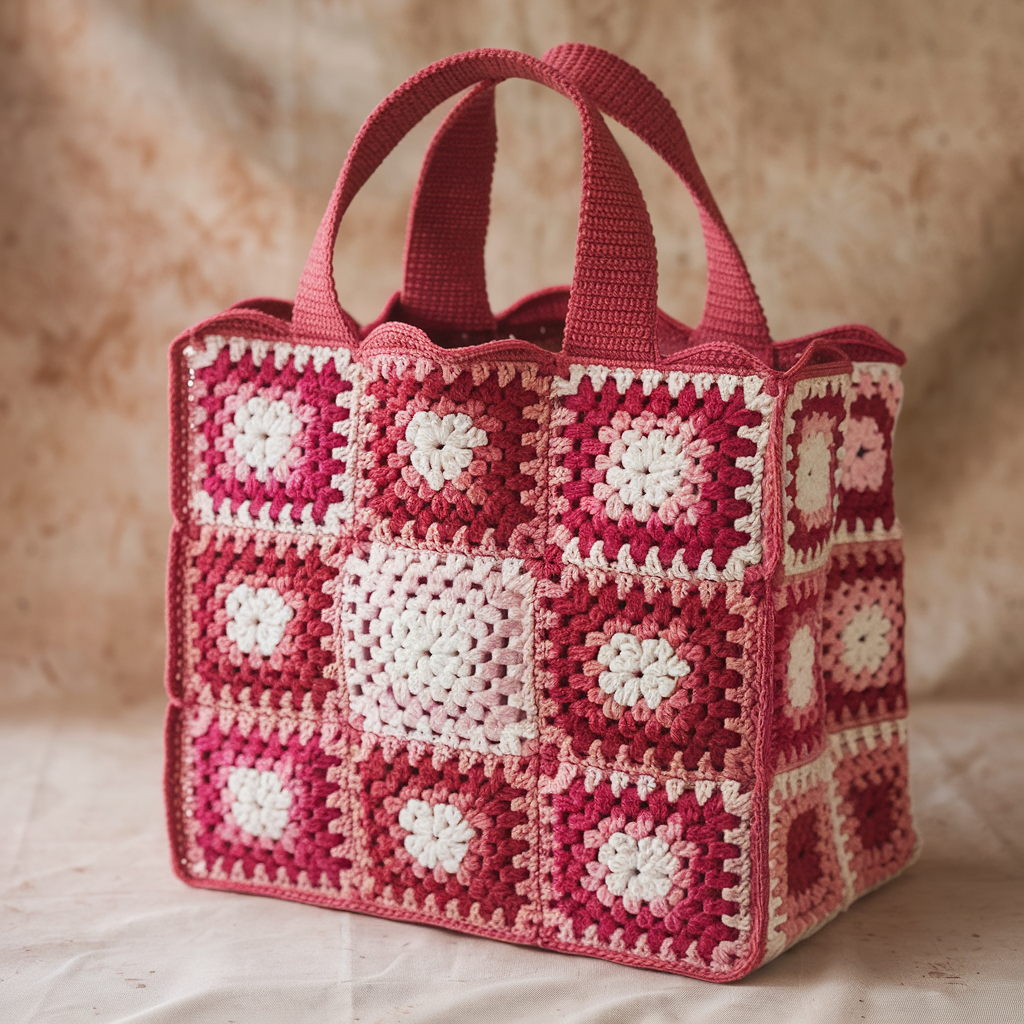 8. Crochet Heart Granny Square Tote Bag Pattern