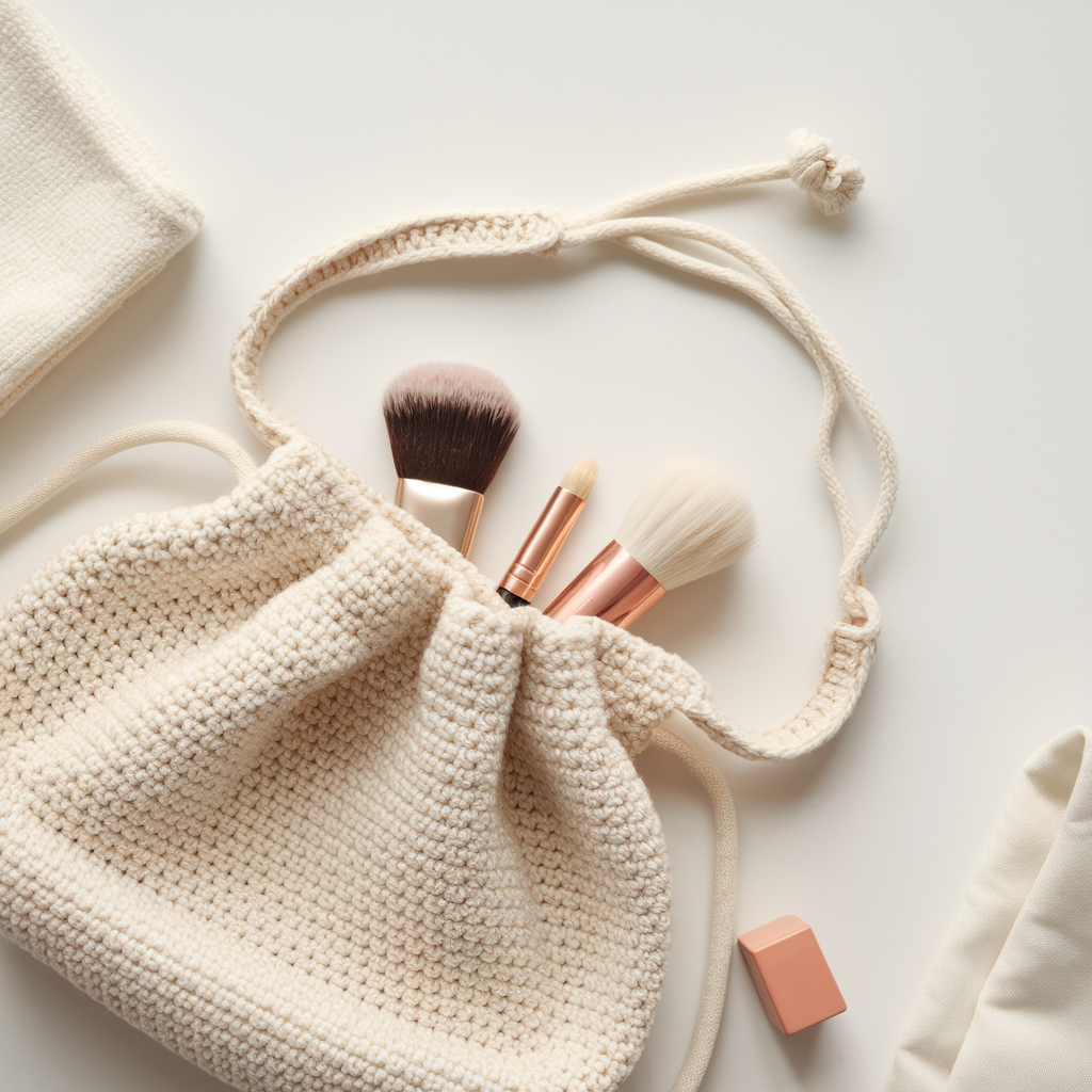 3. Crochet Flat Lay Makeup Drawstring Bag Pattern
