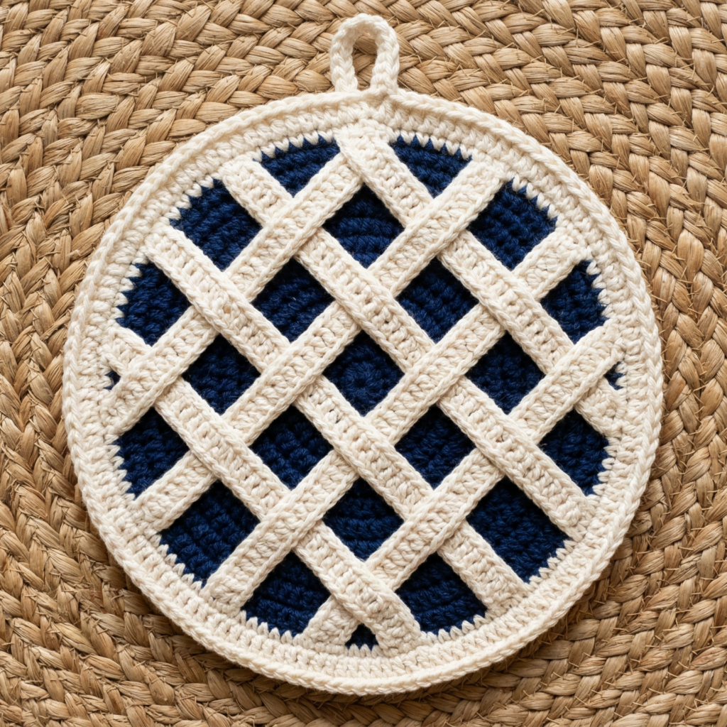Test the potholder for thickness and make sure the stitches are tight enough to offer protection. Weave in all ends carefully and lightly block if needed so it lies flat and looks polished.