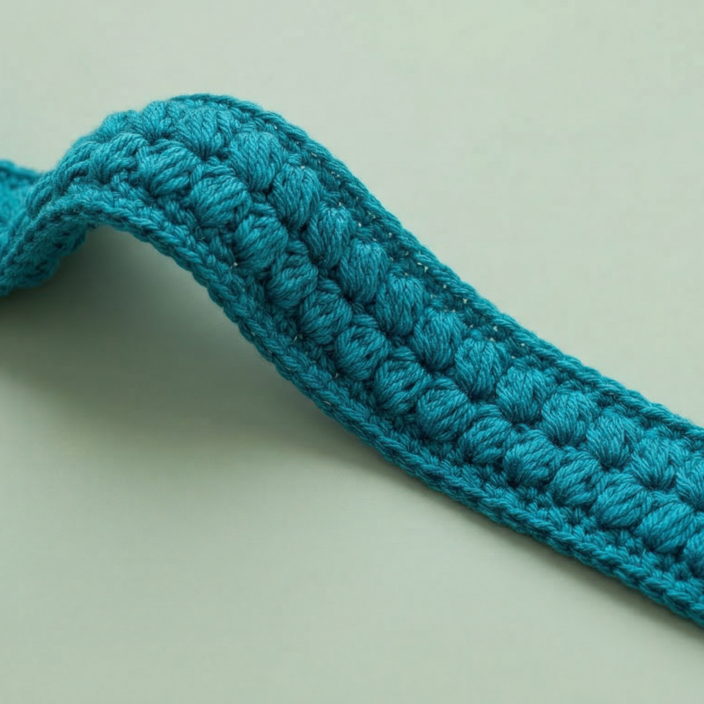 - Continue until the strap is the desired width, usually 8 to 12 rows depending on your yarn and hook.