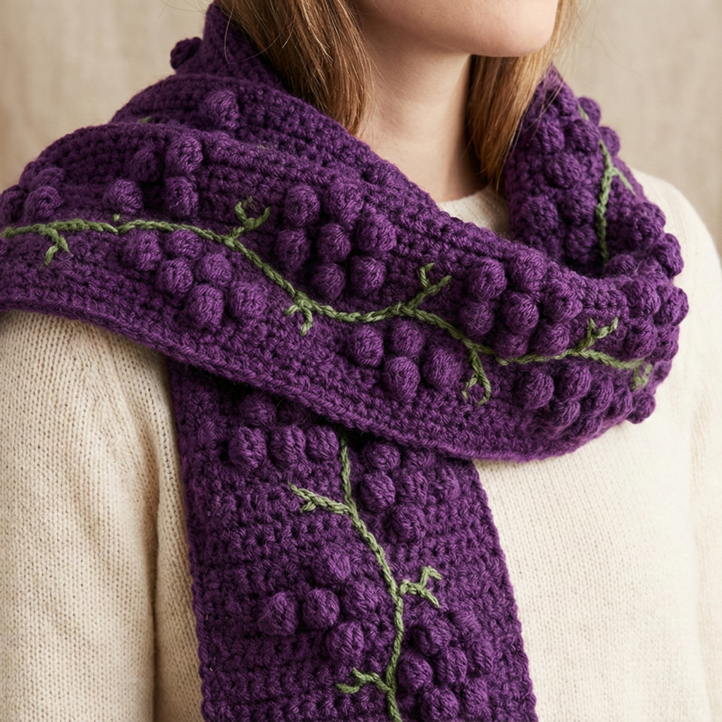 Vibe: textured dots reminiscent of grapes on a vine, playful and tactile; great as a gift scarf.