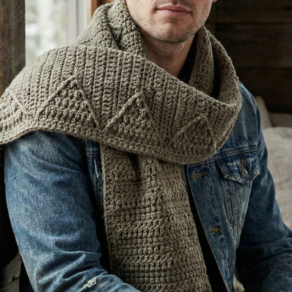 Vibe: rustic and structured; the peaks suggest a mountain-ridge silhouette — great for men’s or unisex scarves.
