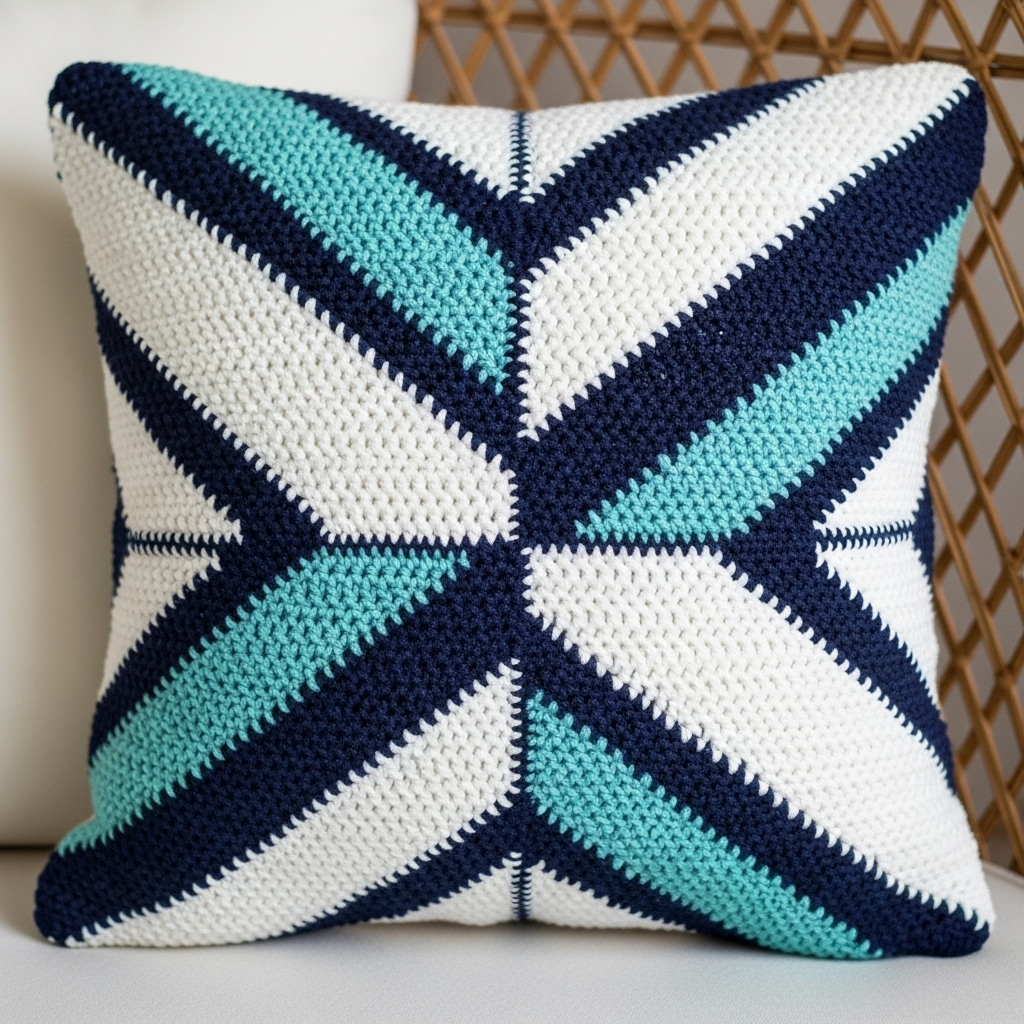 A crisp, graphic mosaic motif that evokes tiles and coastal geometry. Mosaic crochet uses slipped stitches and one color per row, creating a bold two-color pattern with excellent structure.