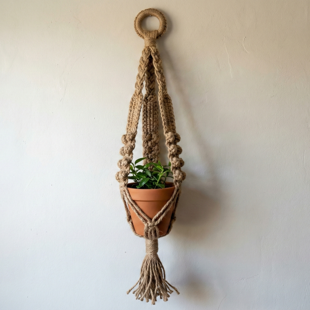 - Outdoor durability — natural jute will weather; use synthetic or treated cord for outdoor hangers if you want longer life.