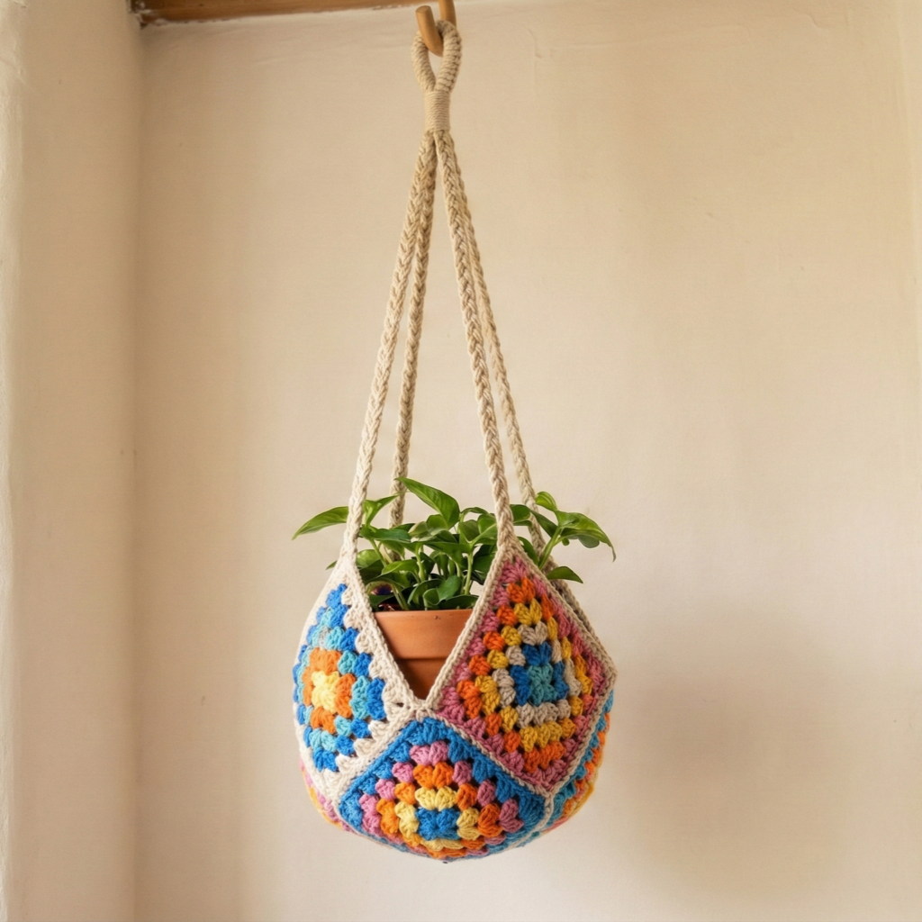 These five boho-style crochet plant hanger patterns give you a broad toolkit: from a sculptural Monstera and the classic quick Patons mesh, to a rustic Macramé jute look, playful granny-square patchwork, and the tailored Ivy stitch hanger. Pick the pattern that matches your décor, skill level, and the pot/plant you’ll hang. A few final practical reminders: