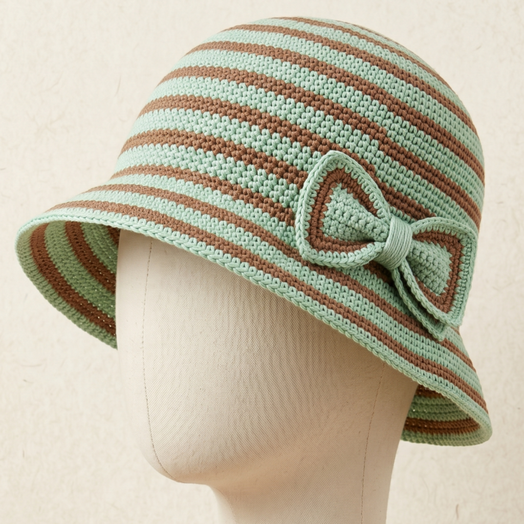 This hat looks especially stylish in bold, high-contrast colors, but soft neutral checks can also look beautiful. If you want a more fashion-forward version, try pastel checks or a two-tone palette with a soft brim. This is a fun piece for festivals, beach days, or everyday summer styling.
