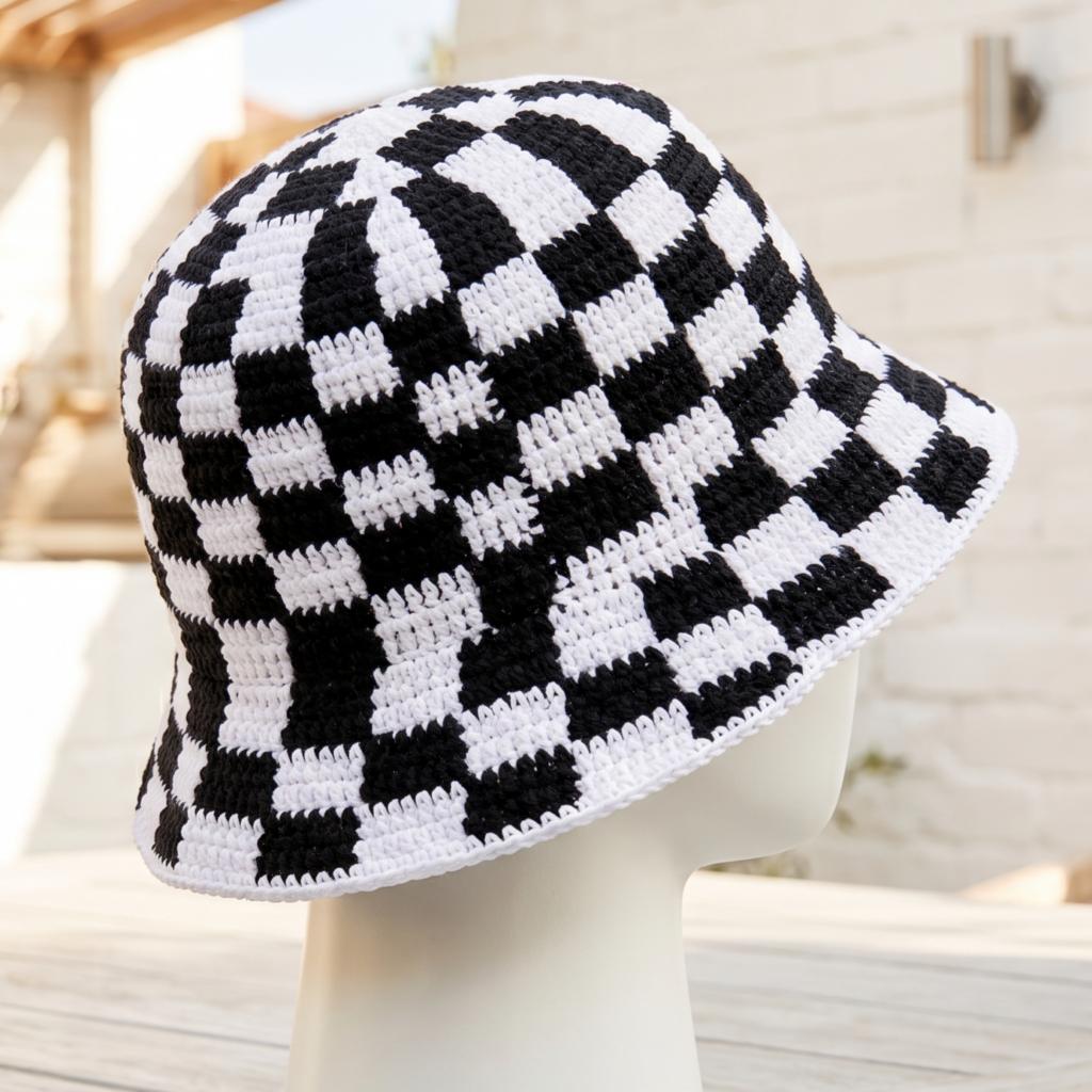 5. Crochet Checkered Bucket Hat Pattern