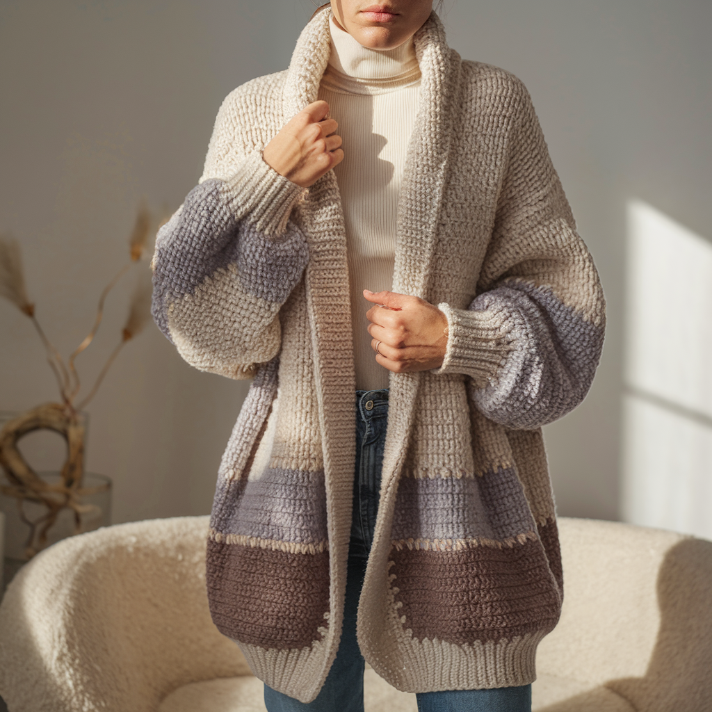 - Tip: Use neutral palette or bold color blocks. For extra coziness, add large patch pockets.