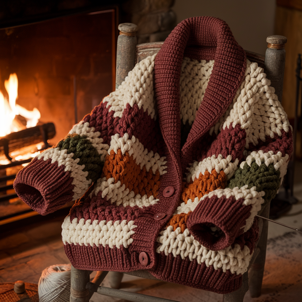 You now have five complete, usable cardigan blueprints: cropped, granny, draped oversized, granny-square patchwork, and chunky fireside. Each pattern gives you the structure and stitch-by-stitch directions to make a garment that fits and lasts — assuming you actually swatch and follow the numbers instead of winging it like some wild yarn anarchist.