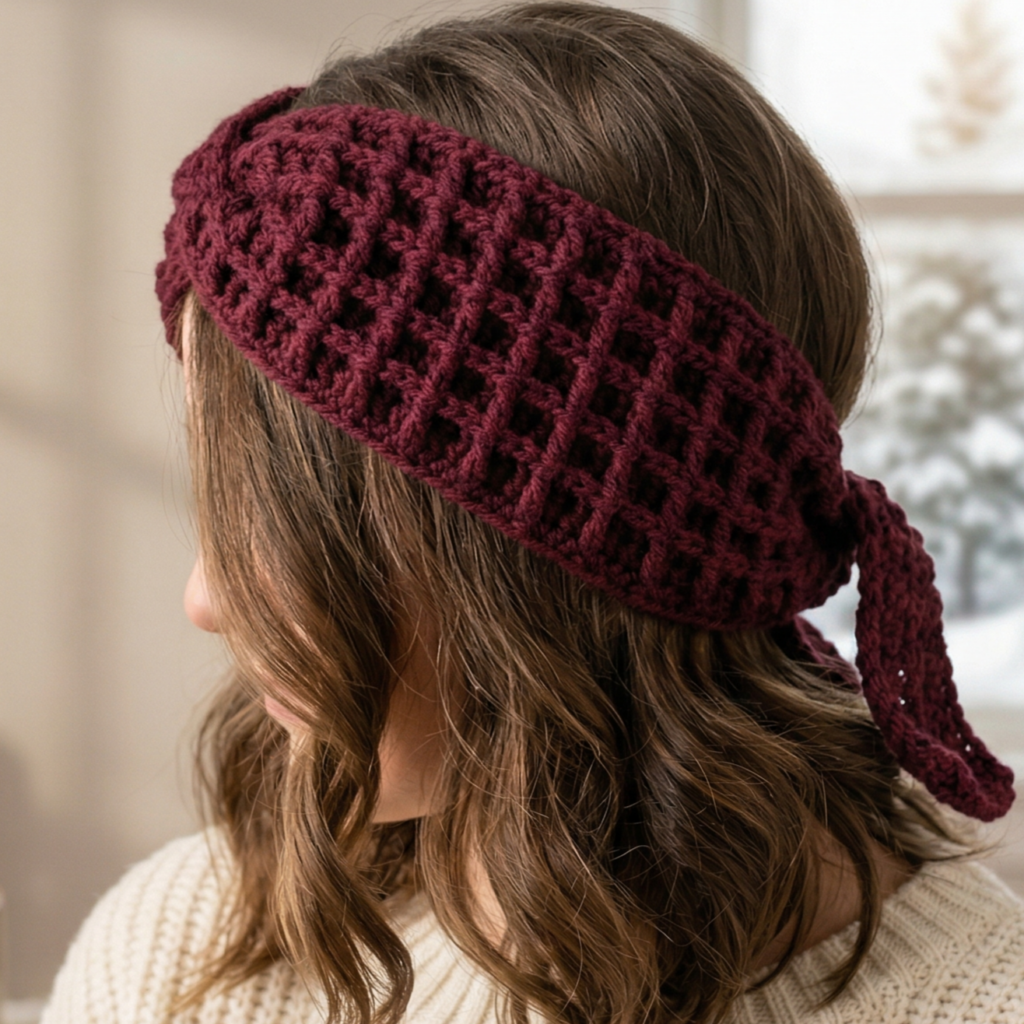 Waffle stitch creates a grid-like texture that looks bold and cozy. It usually uses front post and standard stitches to create a raised pattern. Before starting the headband, practice a small swatch so you understand the stitch flow.