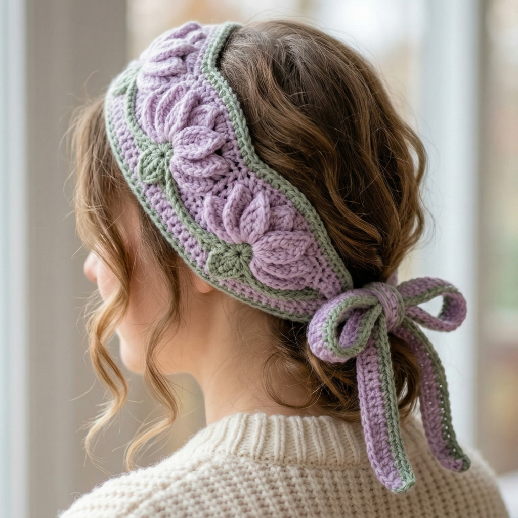 Weave in the yarn ends and trim carefully. When worn, the headband should feel soft, lightweight, and secure. Tie it at the back into a simple knot or bow, depending on the look you prefer.