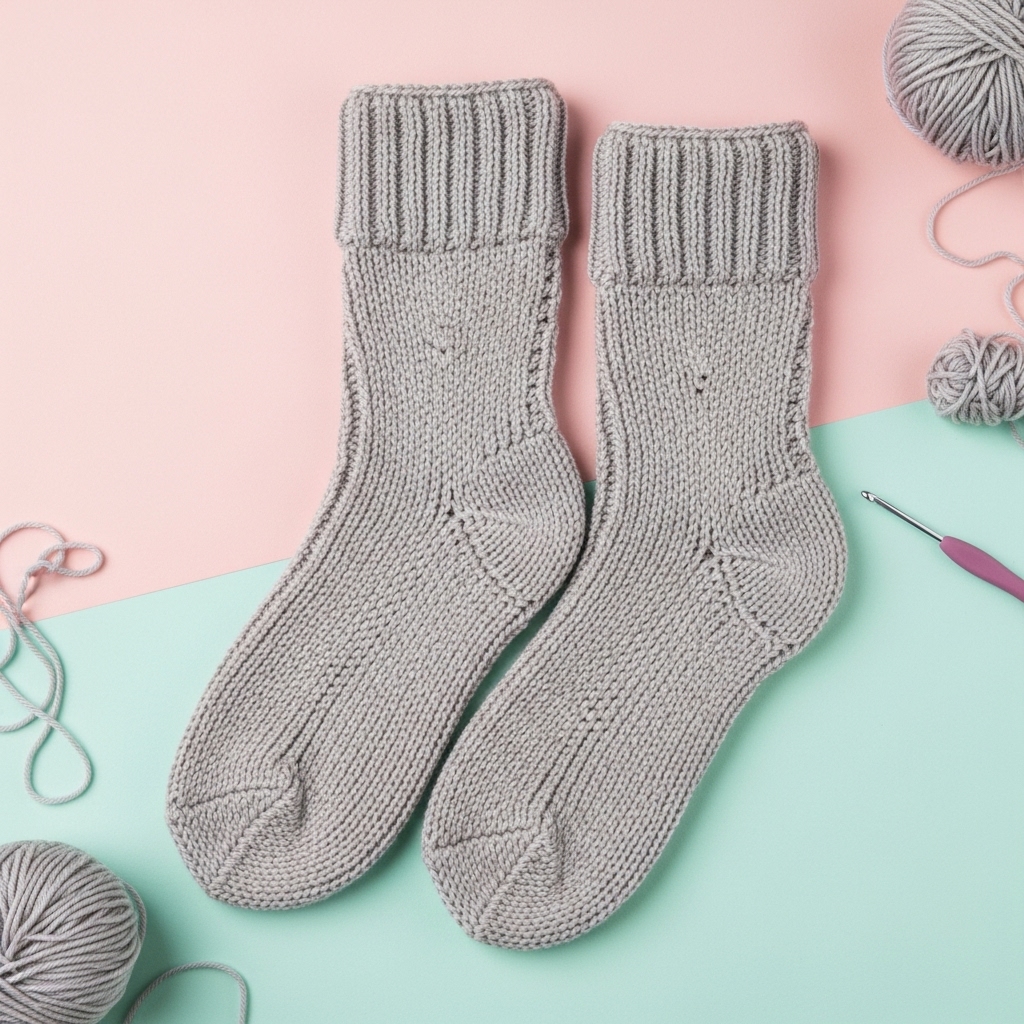 - Safety & durability: For household socks you’ll want sturdy construction — use a tightish gauge, secure all tails, and reinforce heel/gusset joins. For decorative socks (costume, props), finishing may be lighter.