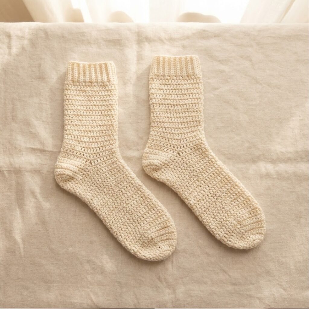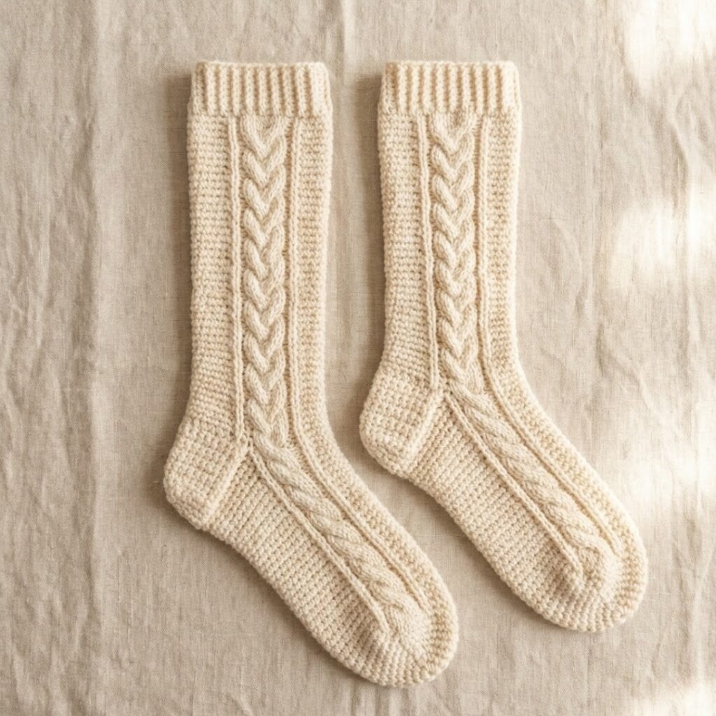 These five cozy patterns give you everything from a basic reliable pair you can make again and again to a knee-high statement sock and a knit-looking Tunisian alternative. Use the gauge-first approach and the formulas above to fit any foot precisely; once you have one pattern locked in, it’s easy to personalize color, texture, and finish.