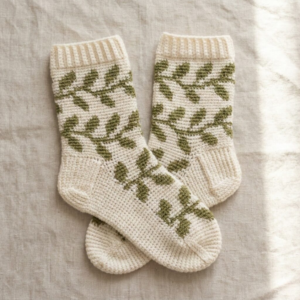 2. Crochet Vine Colorwork Socks Pattern