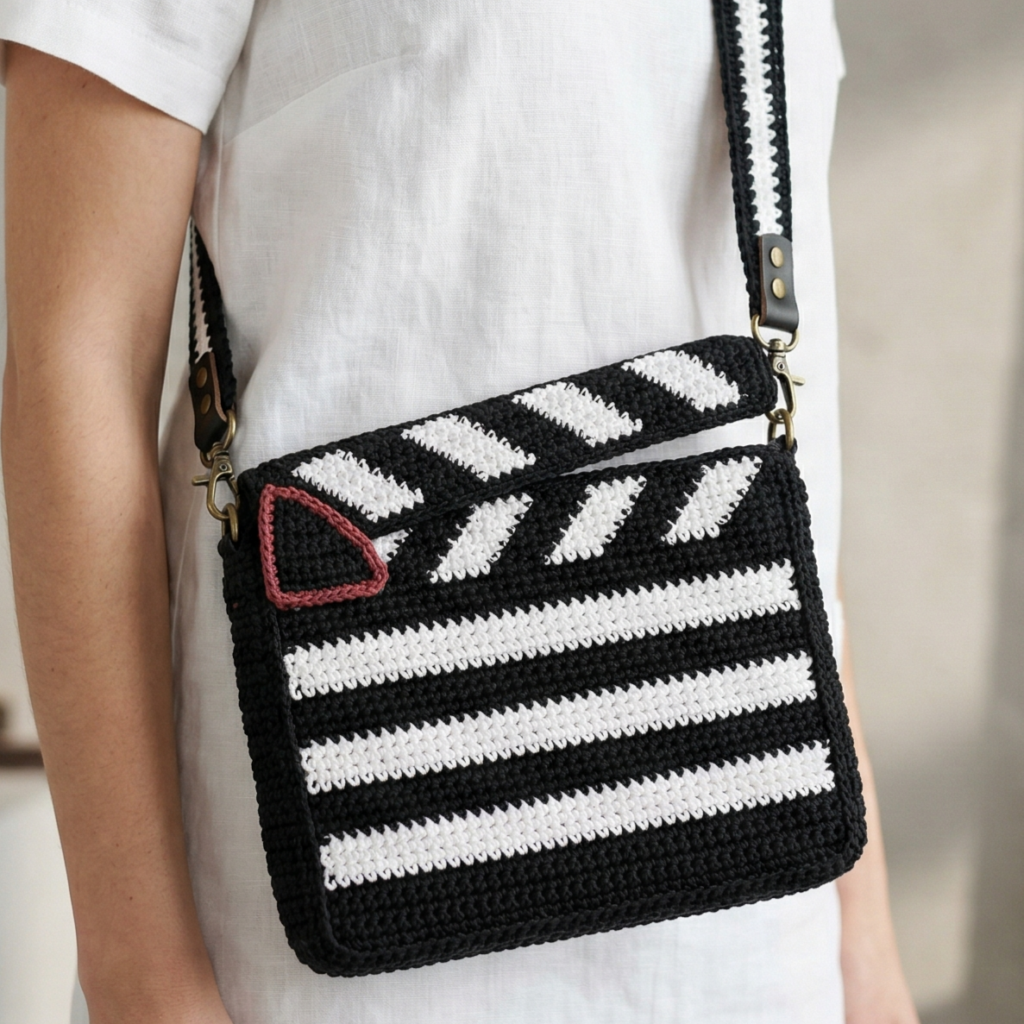 A clapboard movie bag is playful, graphic, and instantly recognizable. It is a perfect choice for film lovers, theatre fans, or anyone who wants a crossbody bag with a little bit of fun personality. The shape and stripe details can be made to resemble a movie clapboard while still remaining practical and stylish.