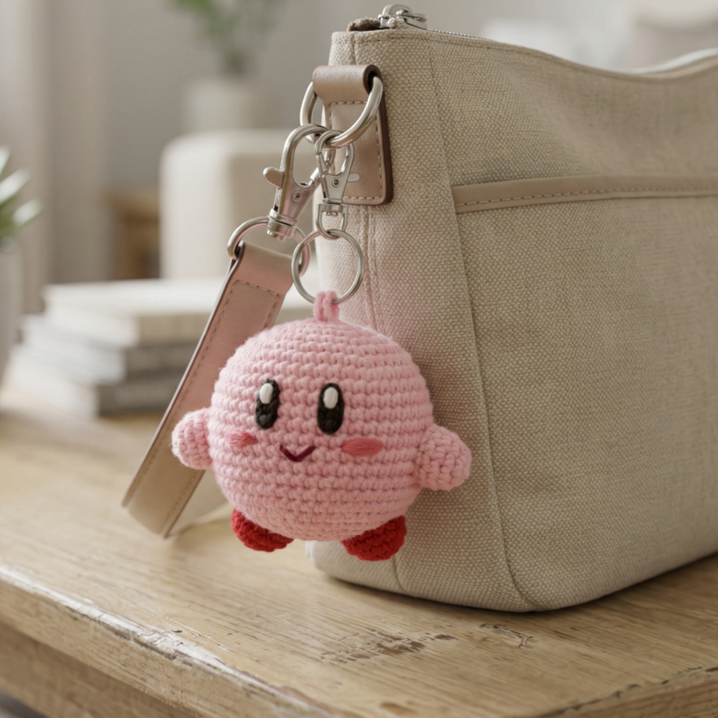 A mini Kirby-inspired keychain is playful, round, and full of character. The shape is simple, which makes it a fun project for a tiny plush-style charm. Because it is so compact, this keychain is easy to carry and makes a very cute gift for fans of soft, character-inspired accessories.