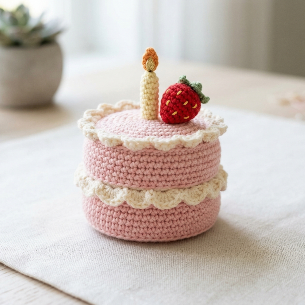 This strawberry birthday amigurumi is a charming little project that combines a fruit shape with a festive candle on top. It is perfect for birthday gifts, party décor, or seasonal handmade presents.