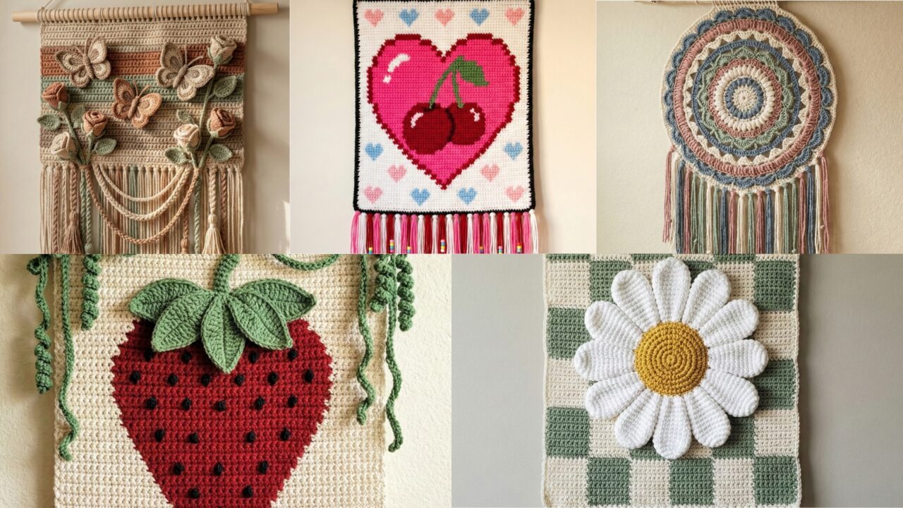 Those five wall-hanging patterns—Mandala, Checkerboard Daisy, Butterfly Rose Tapestry, Y2K Cherry Heart, and Summer Strawberry Tapestry—give you five different approaches to wall art: radial mandalas, graphic tapestry, layered appliqué collages, nostalgic pixel art, and seasonal story-telling. Each is designed so you can scale the size, swap color palettes, or combine techniques (for example, add a mandala center to a tapestry border, or stitch small appliquéd fruits onto a checkerboard background).