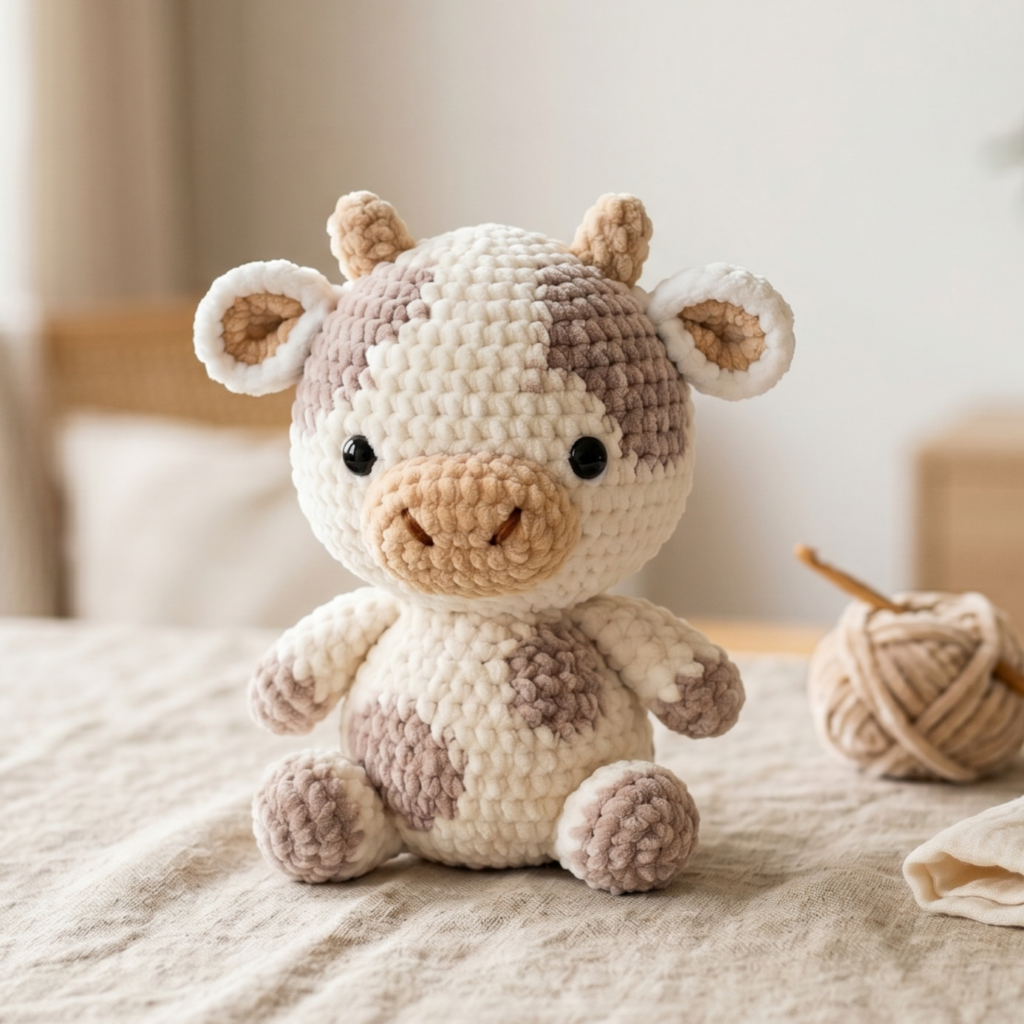 A mini cow amigurumi plush is a beloved classic because cows are instantly cute and easy to personalize. The black-and-white look is iconic, but you can also make pastel or brown versions for a softer, more whimsical style. This little plush makes a great gift for animal lovers and farmhouse-inspired decor fans.