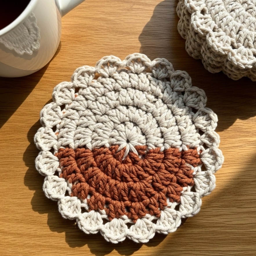 - Gifting: Package sets of four in a neat stack with twine and a small tag explaining yarn fiber and wash instructions. Coasters make excellent quick gifts and market items.