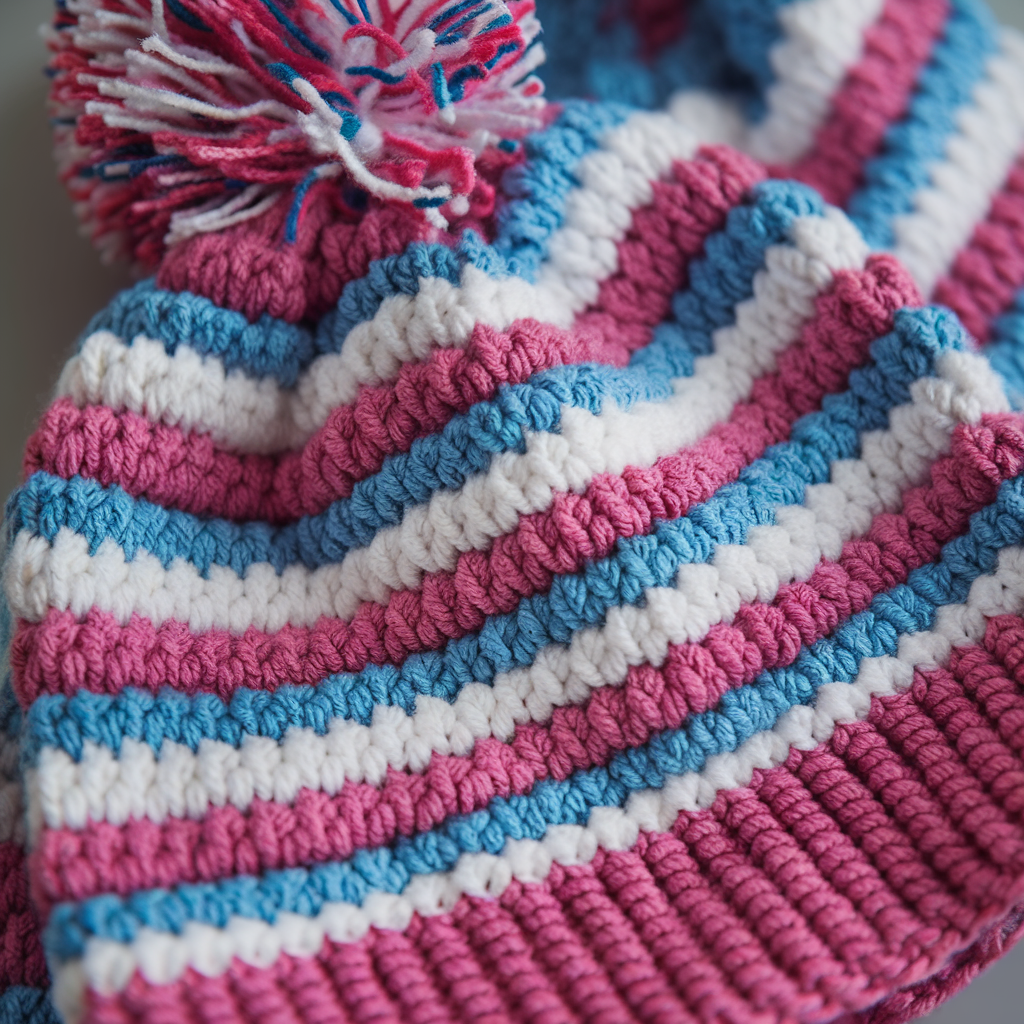 - Use a contrast color for last 3–4 rounds before ribbing to create a stripe band.