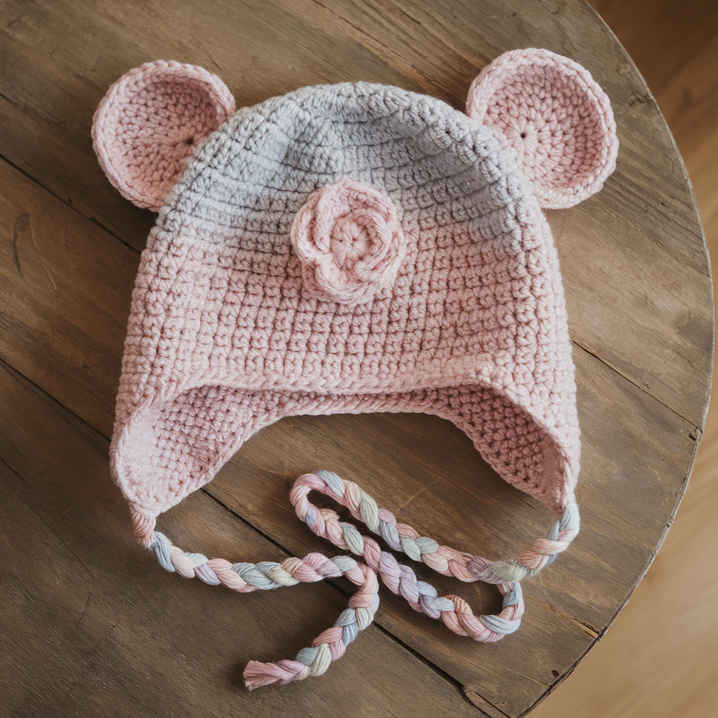 - Tapestry needle, small pom or button for rose center, optional earflap ties (braided yarn)