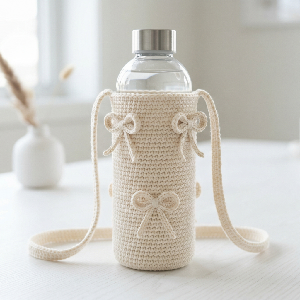 A ribbon bows bottle holder is soft, pretty, and beautifully giftable. The bow detail adds elegance and charm, making it a lovely choice for craft fairs or handmade presents. This design is perfect if you want a bottle holder that feels feminine and polished while still being practical for everyday use.