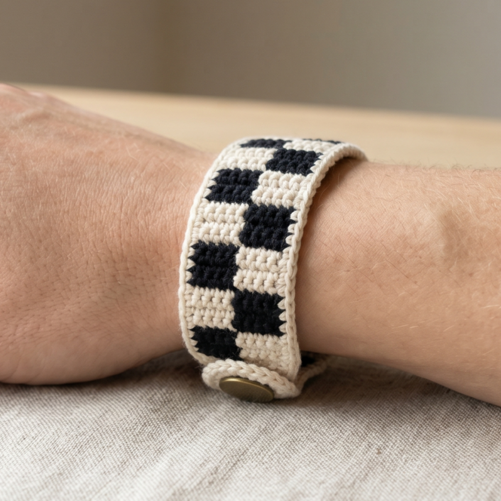 A checkered crochet bracelet feels modern, playful, and trendy. The small check pattern gives it a graphic look that is perfect for anyone who likes accessories with a little edge. Because the bracelet is small, the check design feels fun without becoming overwhelming.