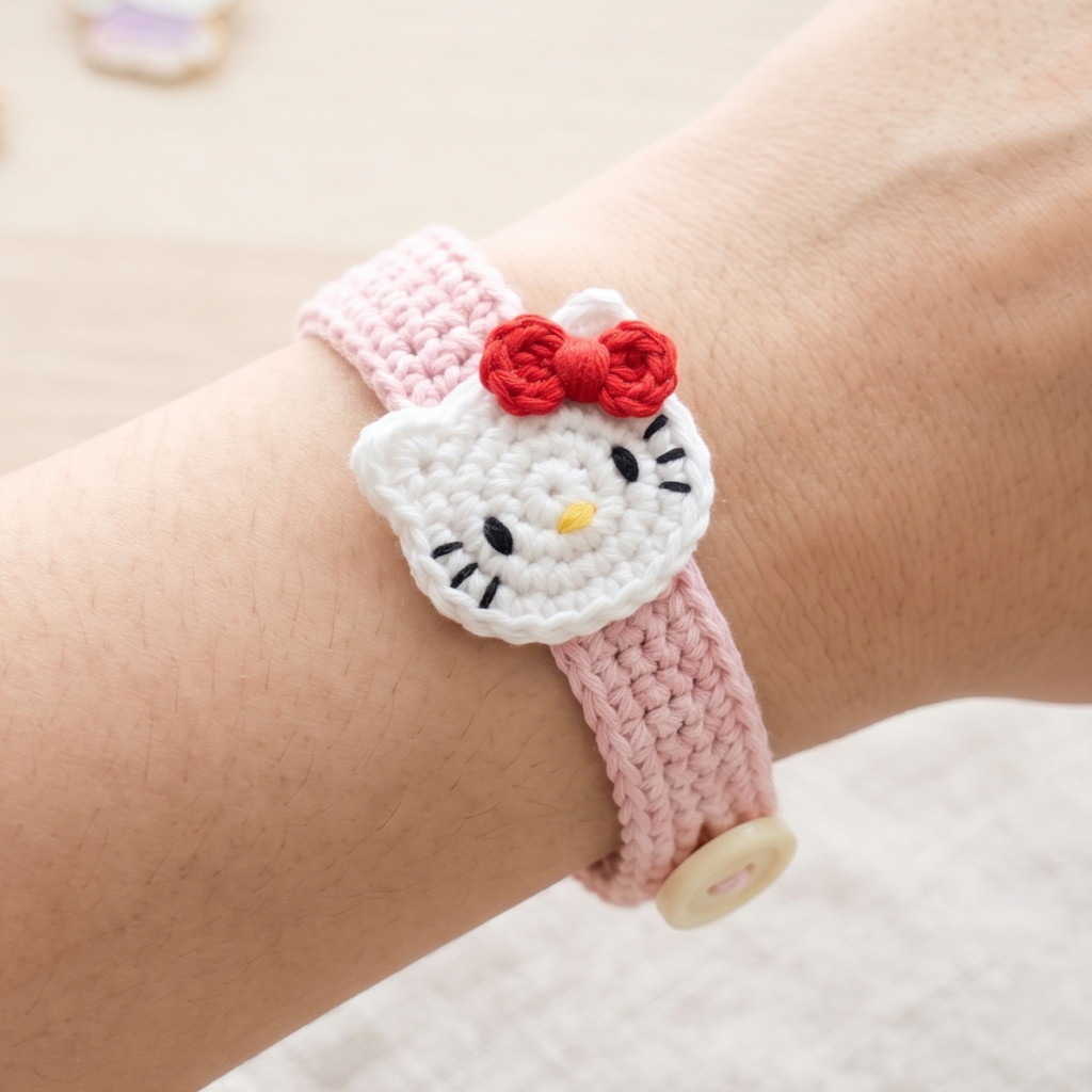 A Hello Kitty crochet bracelet feels cute, nostalgic, and full of personality. It is a fun pattern for anyone who loves character-inspired accessories and wants a bracelet that feels playful and easy to recognize. Because the motif is small, it is perfect for a quick and cheerful handmade project.
