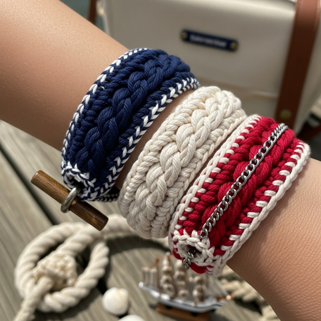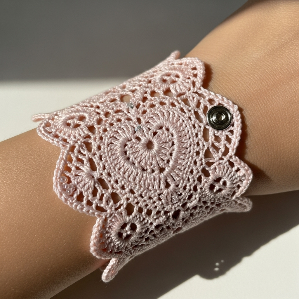 You now have five polished crochet bracelet patterns that cover a wide stylistic range — delicate lace, festive motifs, casual summer bands, bold nautical cuffs, and feminine scallops. A few final styling and production tips: