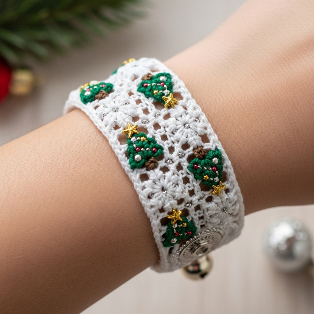 2. Crochet Tree & Snowflake Christmas Bracelet Pattern