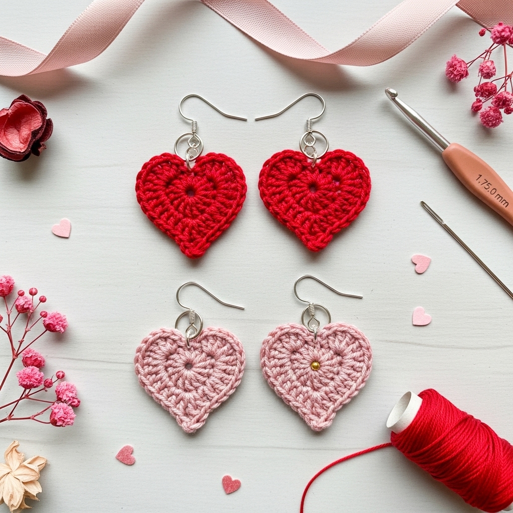 1. Crochet Valentine’s Heart Earrings Pattern