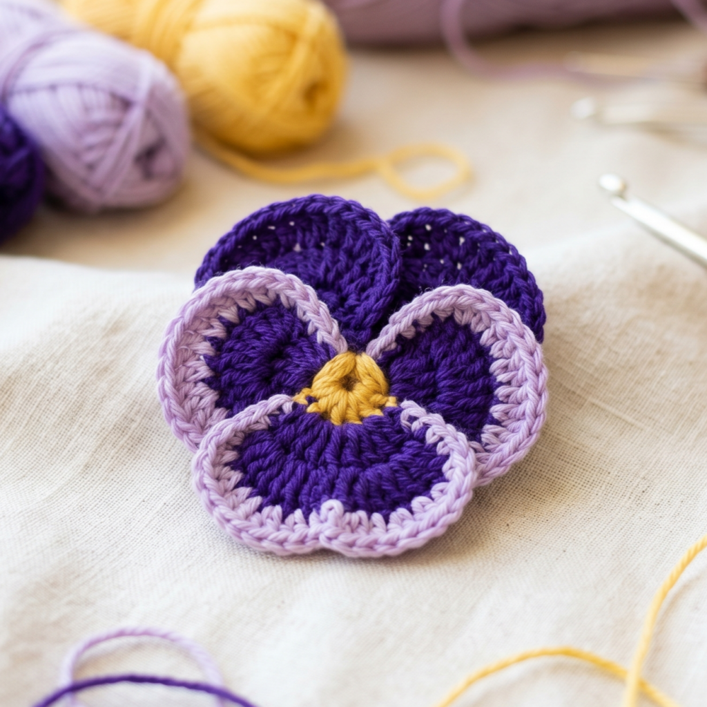 1. Crochet Pansy Flower Applique Pattern