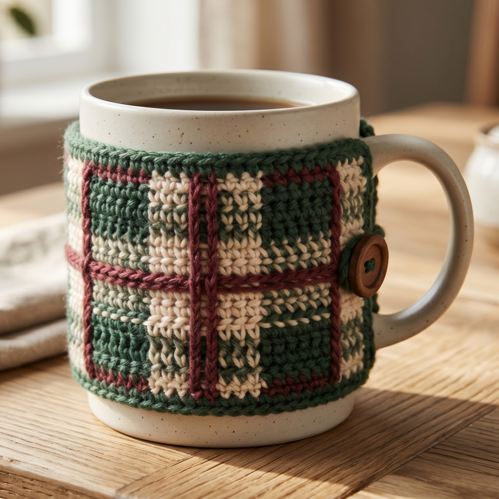 A plaid mug cozy feels modern, cozy, and stylish. The plaid pattern gives it that classic layered look that is perfect for fall, winter, or anyone who loves a more graphic handmade style. It is especially nice if you want a mug cozy that feels seasonal and polished.