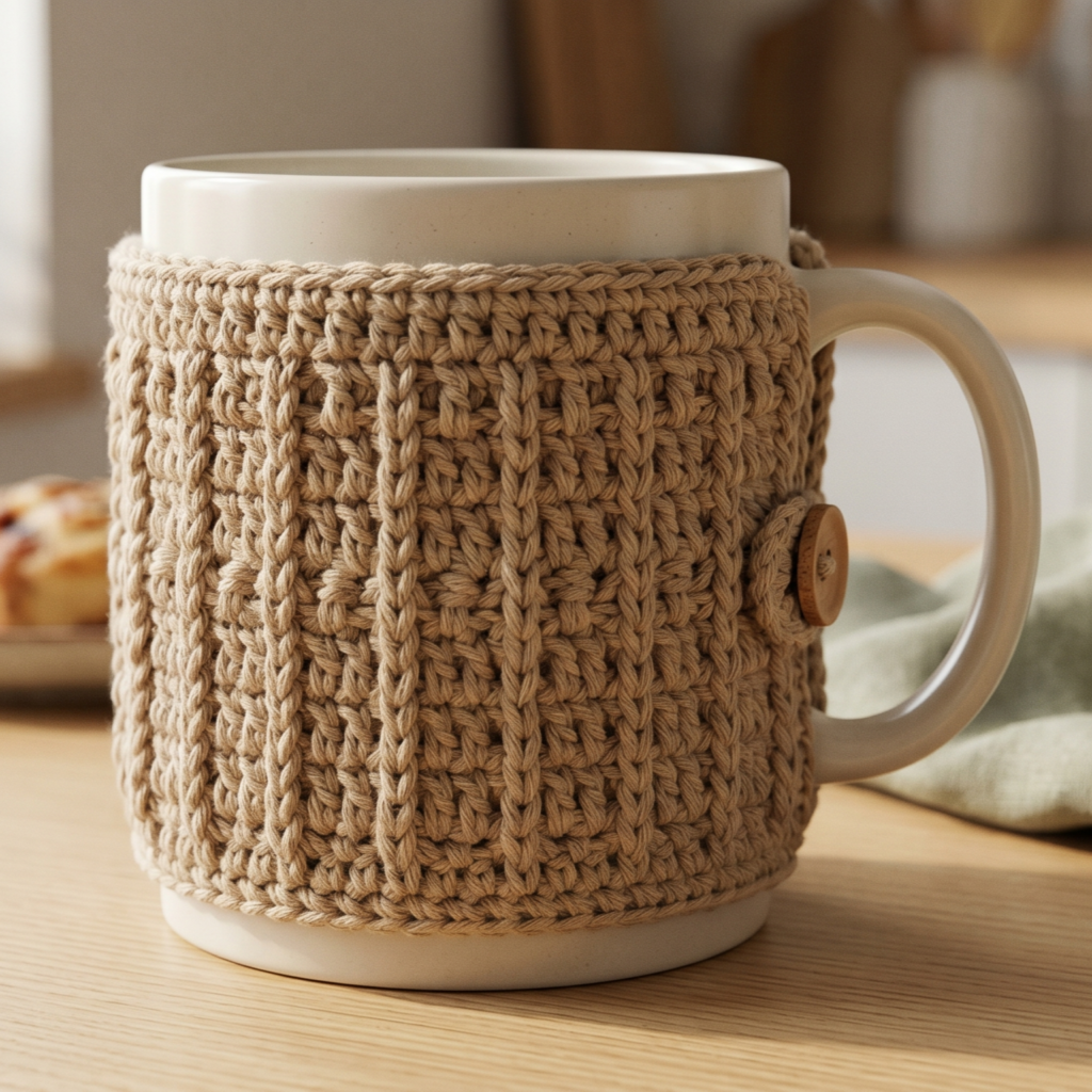This cozy looks especially nice in solids because the texture becomes the star. It is a great choice for beginner gift sets because it is simple, practical, and easy to adapt to different mug sizes.