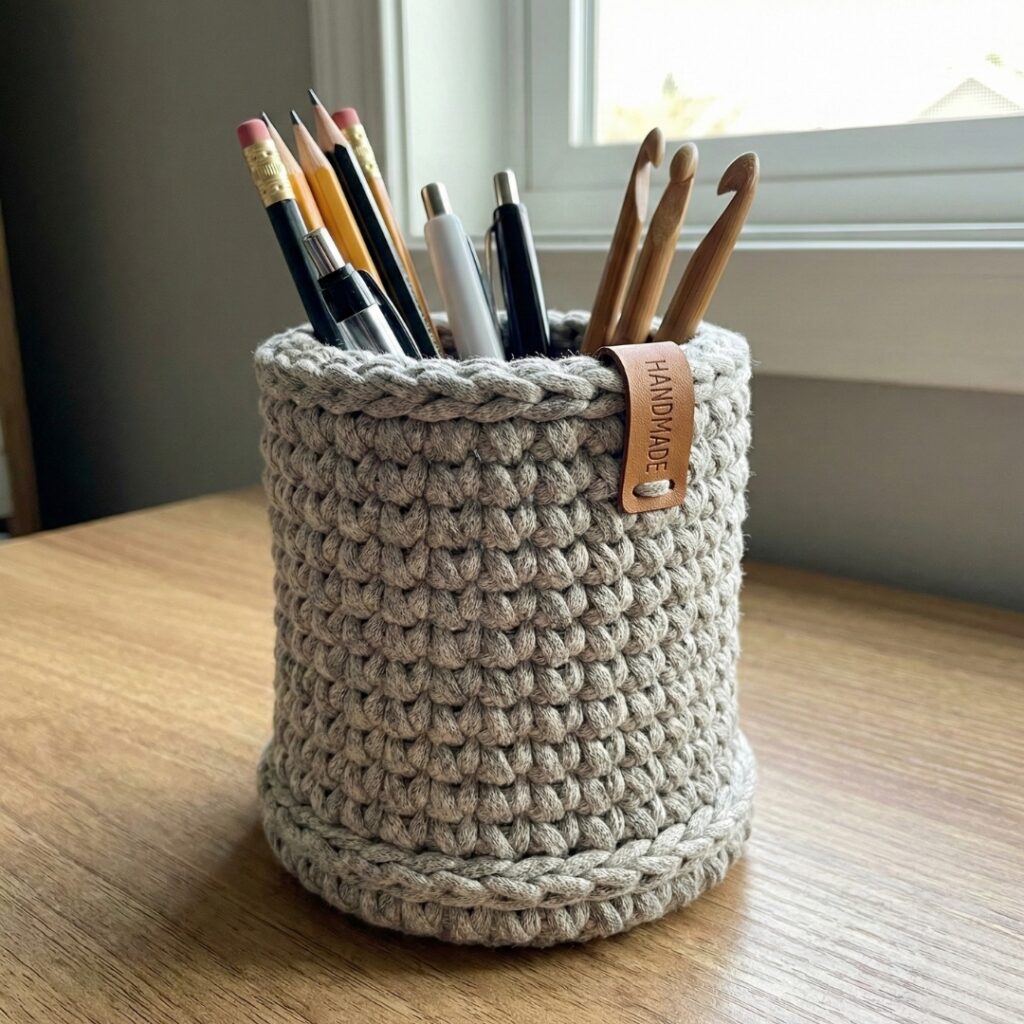 In this post, you’ll find five detailed crochet pencil holder patterns, each with a distinct style and clear, easy-to-follow step-by-step guidance. These designs are ideal for holding pens, pencils, markers, crochet hooks, makeup brushes, or even paintbrushes. Most are worked in the round and can be adjusted easily for height or width.