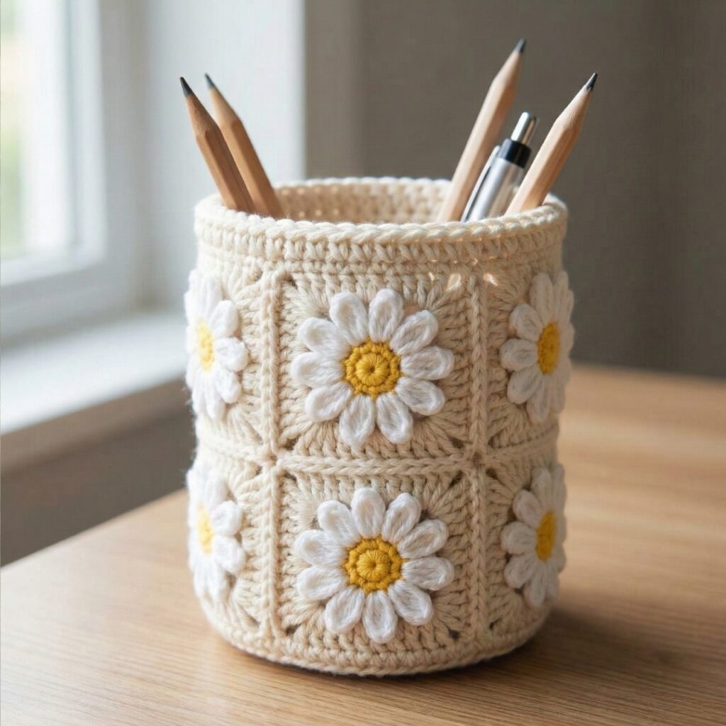 1. Crochet Daisy Pencil Holder Pattern