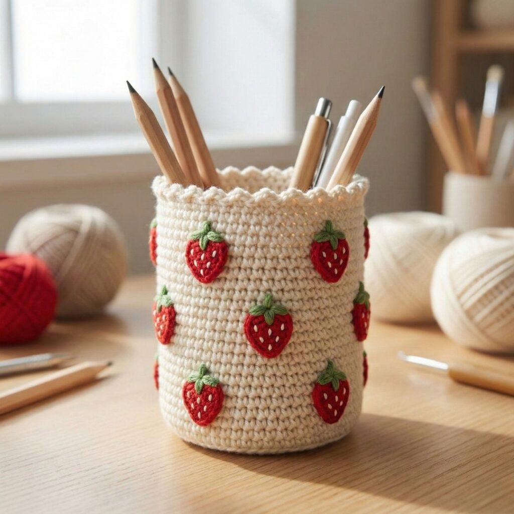 2. Crochet Strawberry Motifs Pencil Holder Pattern