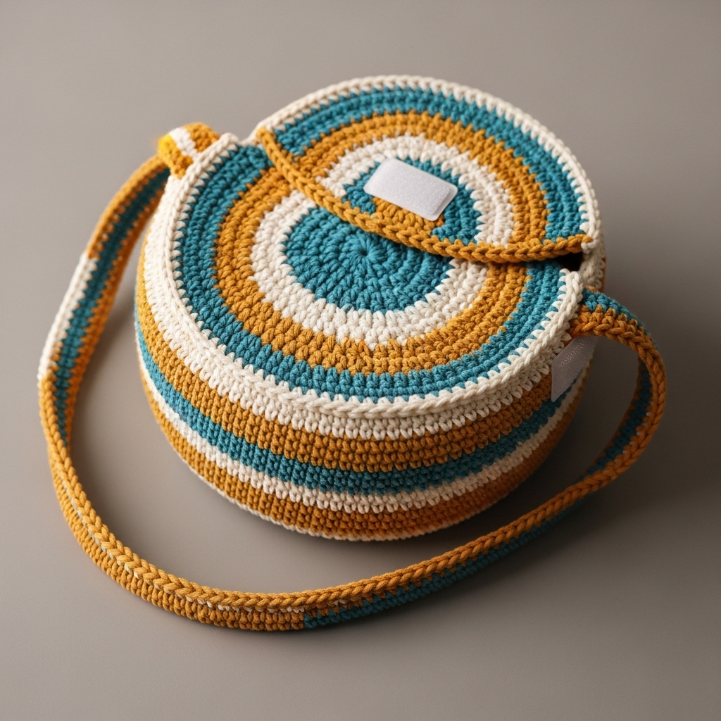 - Attach strap securely to opposite sides of bag interior using reinforced sc tabs: pick up 8–10 stitches at left and right seam and work 6–8 rounds creating a sturdy base to sew strap.