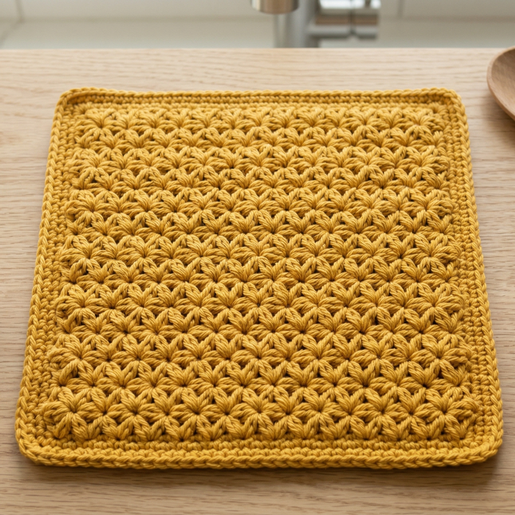 A star stitch dishcloth is thick, textured, and wonderfully absorbent. The star stitch creates a rich surface that feels soft in the hand while still being sturdy enough for everyday cleaning. It is a beautiful option if you want a dishcloth that feels a little more special than a simple flat square.
