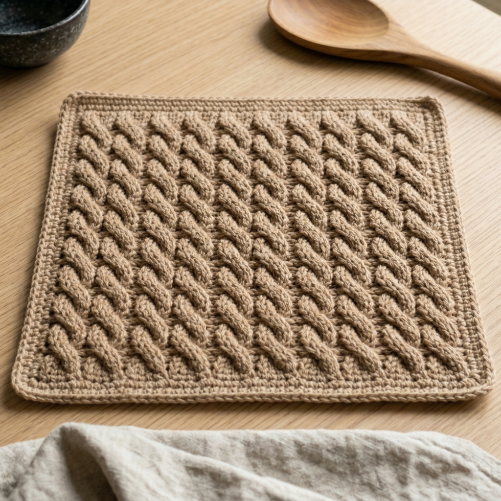 Twisted textures can sometimes tighten the fabric, so keep your stitches even and not too tight. The dishcloth should still feel flexible enough for washing and scrubbing. If it starts feeling too rigid, go up a hook size next time.