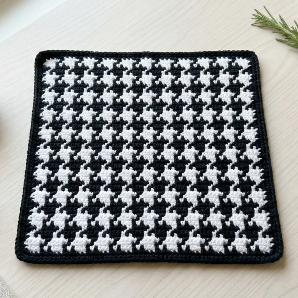 Houndstooth dishcloths look especially nice in strong contrast combinations. If you want a classic kitchen accessory, black and white is hard to beat. If you want something softer, try cream and taupe or gray and white. Cotton yarn with good stitch definition will make the pattern look crisp and polished.