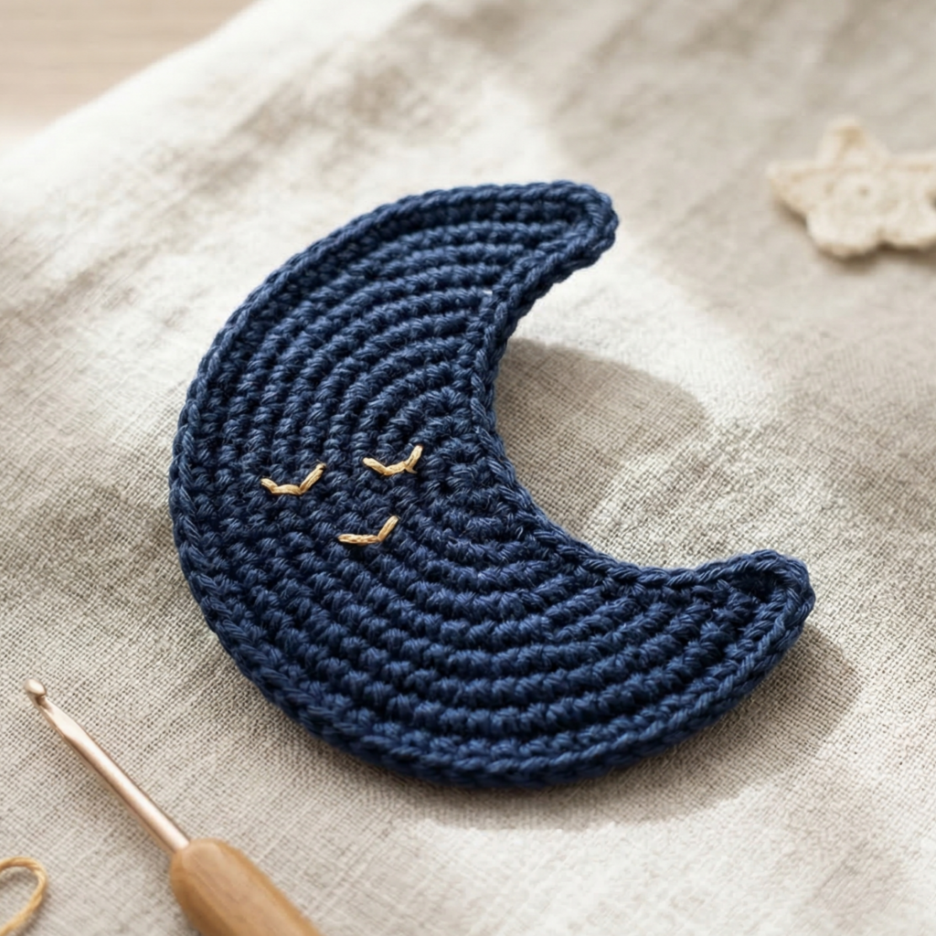 A moon motif is one of the simplest decorative shapes you can make, and it is perfect for patches, garlands, ornaments, or appliqués.