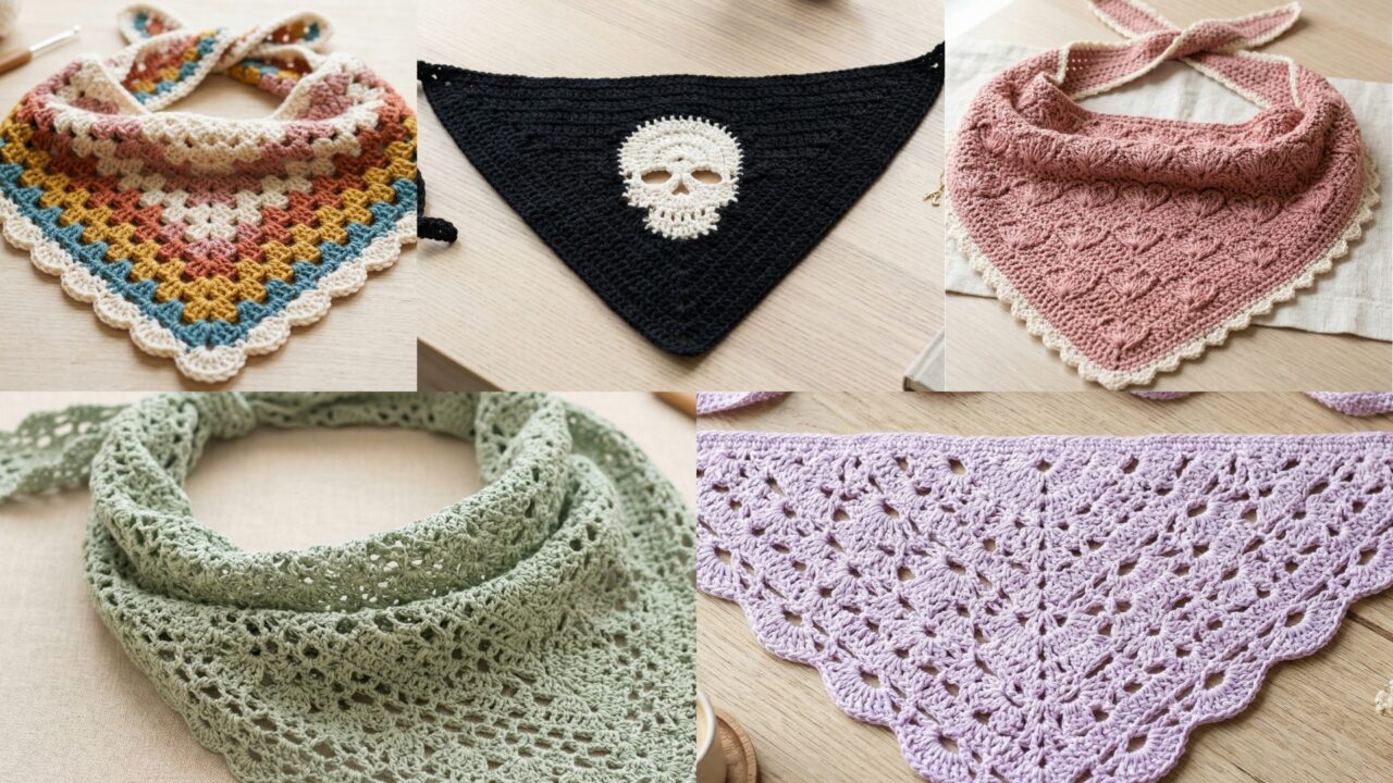 What makes crochet bandanas especially appealing is their versatility. A soft lace bandana can feel delicate and airy. A granny triangle bandana can bring a classic vintage touch. A sweetheart design adds a romantic detail. A skull motif bandana gives off a bold, edgy vibe. A floral bandana feels fresh and feminine. Even though each one has a different look, all of them can be made with basic stitches and simple shaping, which makes them perfect for beginners who want a project that feels fun without being overwhelming.